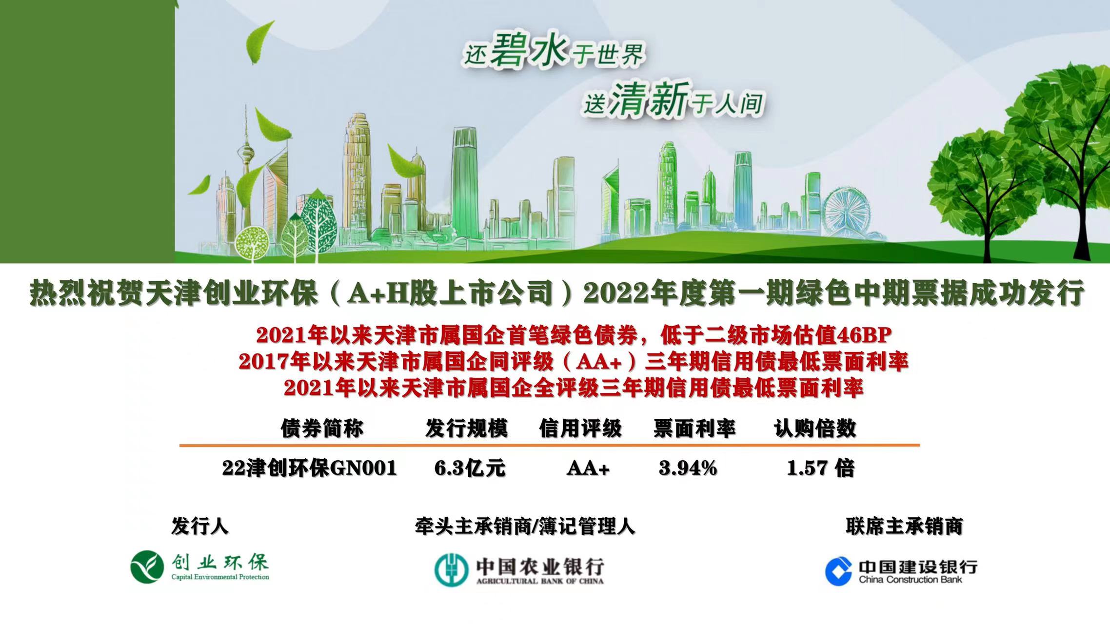 創(chuàng)業(yè)環(huán)保成功發(fā)行綠色中期票據(jù)