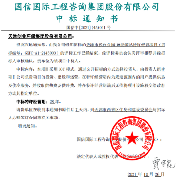 創(chuàng)業(yè)環(huán)保成功中標(biāo)天津市侯臺(tái)公園1#能源站特許經(jīng)營項(xiàng)目