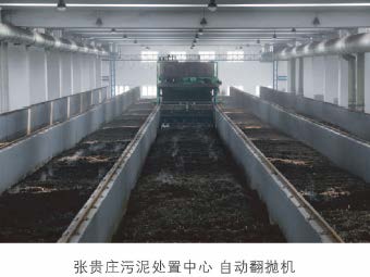 2013年,創(chuàng)業(yè)環(huán)保運行張貴莊污泥處置中心,該廠設(shè)計規(guī)模300噸/日,采用動靜結(jié)合的槽式污泥好氧發(fā)酵工藝,處理后的污泥含水率40%以下。