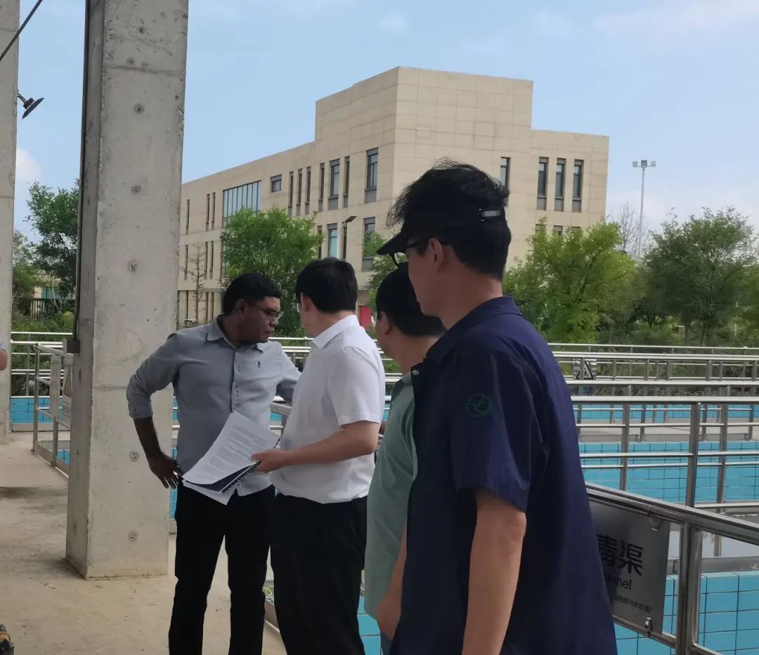 馬來西亞Asia Sewerline Sdn公司工程管理人員在天津市政總院相關(guān)負(fù)責(zé)人員的陪同下來到咸陽路污水處理廠進(jìn)行技術(shù)交流。咸陽路廠技術(shù)人員向來訪人員介紹了廠區(qū)發(fā)展歷程、在水處理行業(yè)取得的成果及水廠智慧化管理平臺、設(shè)施設(shè)備等。來訪人員充分肯定了咸陽路廠現(xiàn)代化的設(shè)備以及工程技術(shù)人員的專業(yè)能力,對咸陽路廠在污水處理領(lǐng)域的專業(yè)性給予高度評價,并向水廠人員介紹了國際水處理行業(yè)的前沿技術(shù)以及國外大型污水處理廠相關(guān)技術(shù)標(biāo)準(zhǔn)。