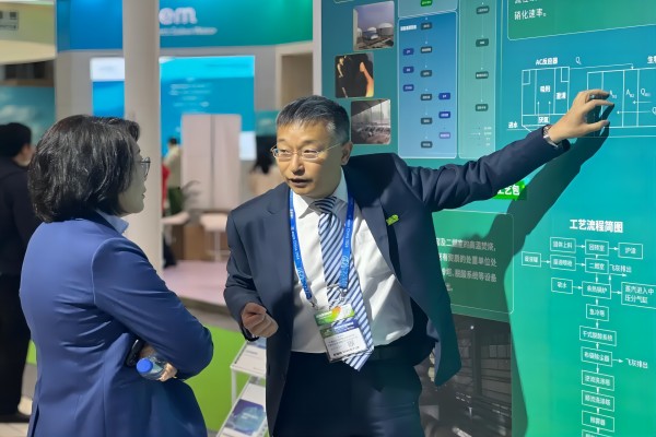 展會期間,創(chuàng)業(yè)環(huán)保集團(tuán)展區(qū)通過宣傳視頻、仿真沙盤、智能體驗(yàn)和產(chǎn)品展示等方式,立體化、可視化、多元化展現(xiàn)污水、再生水、污水源熱泵、污泥、光伏儲能“五維一體”的特有商業(yè)新模式,呈現(xiàn)減污降碳增效、固廢協(xié)同處理、資源循環(huán)利用、數(shù)智運(yùn)營管控等方面取得的最新創(chuàng)新成果?,F(xiàn)場工作人員向觀展代表就科技產(chǎn)品、技術(shù)工藝包、應(yīng)用案例等進(jìn)行詳細(xì)介紹,為后續(xù)開展項(xiàng)目合作奠定良好基礎(chǔ)。
